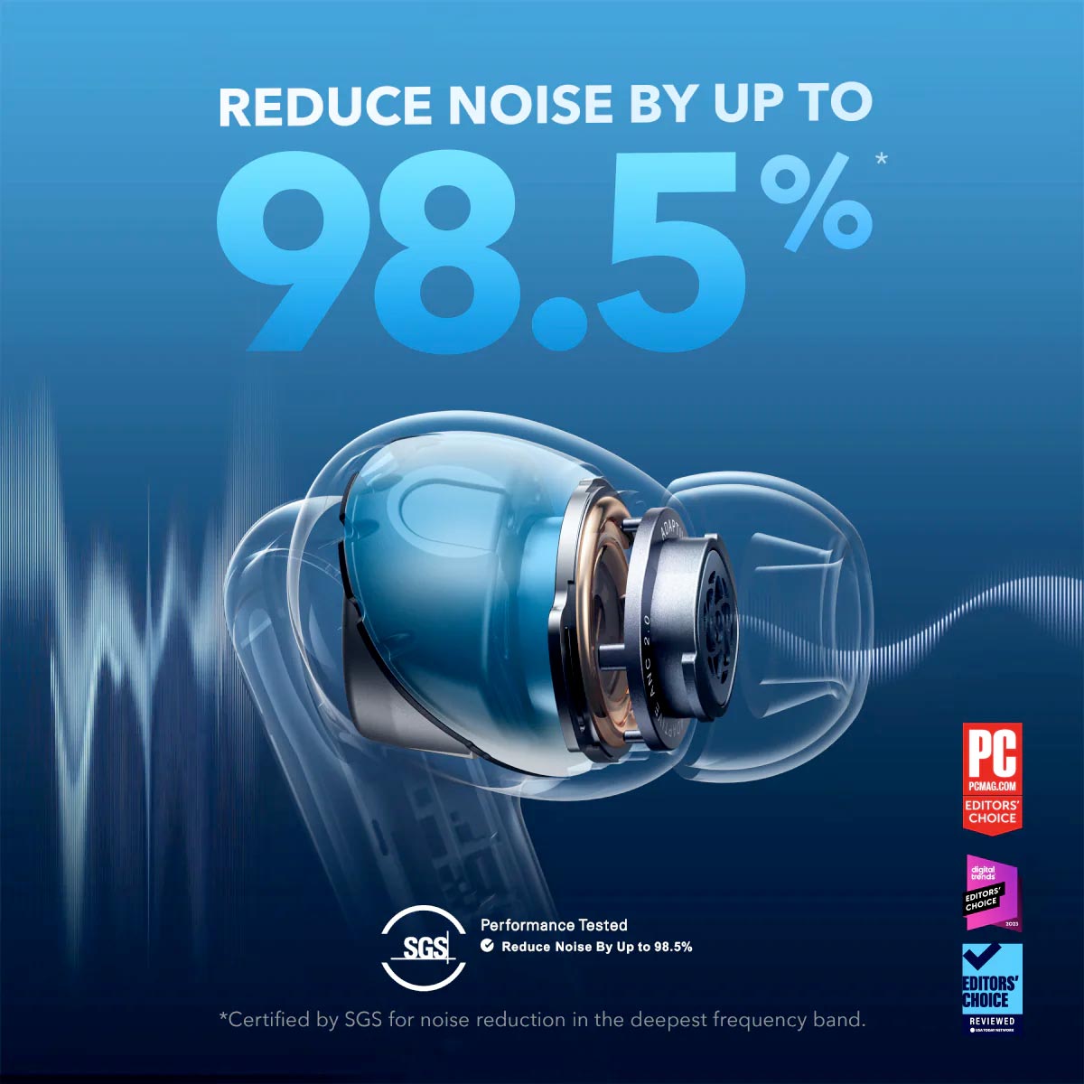 Reduce noise by up to 98.5% with our advanced noise cancelling system
