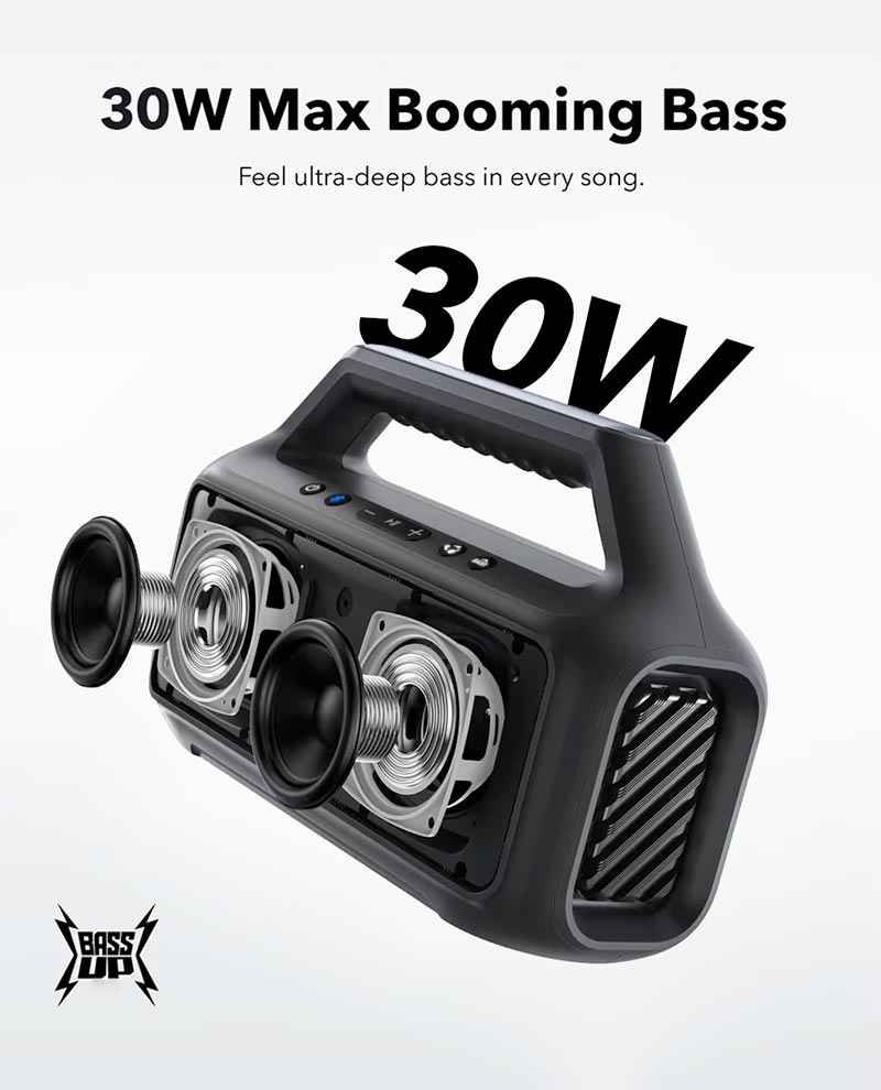 30W Stereo sound and BassUp 2.0