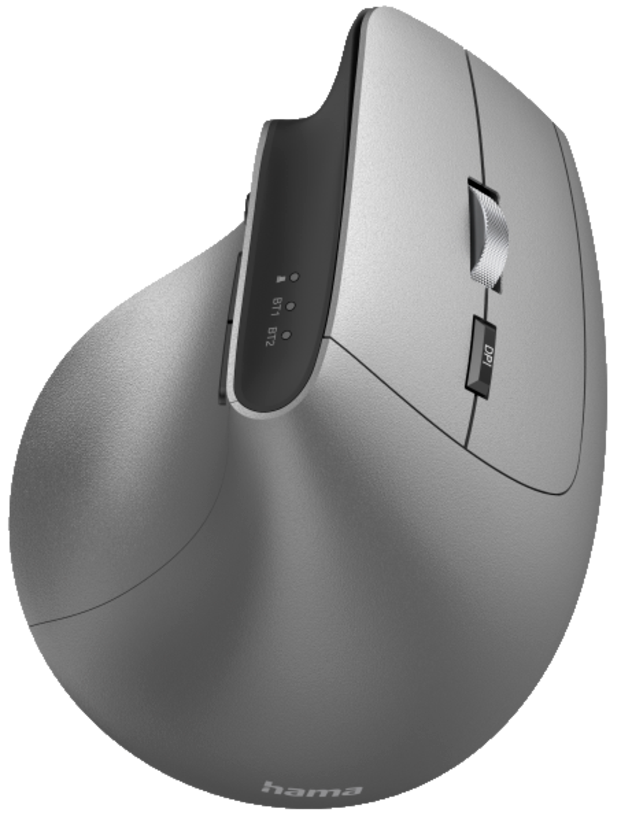 The Hama EMW-700 vertical mouse perfectly rises to ergonomic challenges and enables easy switching between internet pages with its practical browser buttons. When using multiple end devices, you can easily switch between the three devices with the push of a button.